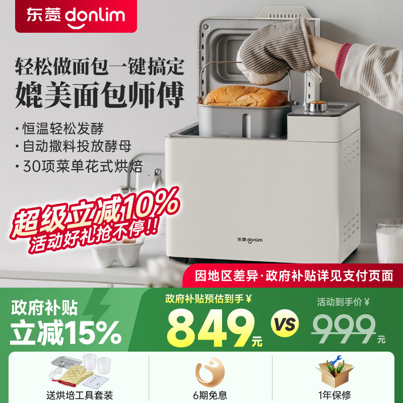 东菱面包机家用全自动智能小型和面机烤吐司多功能揉面机DL-1352