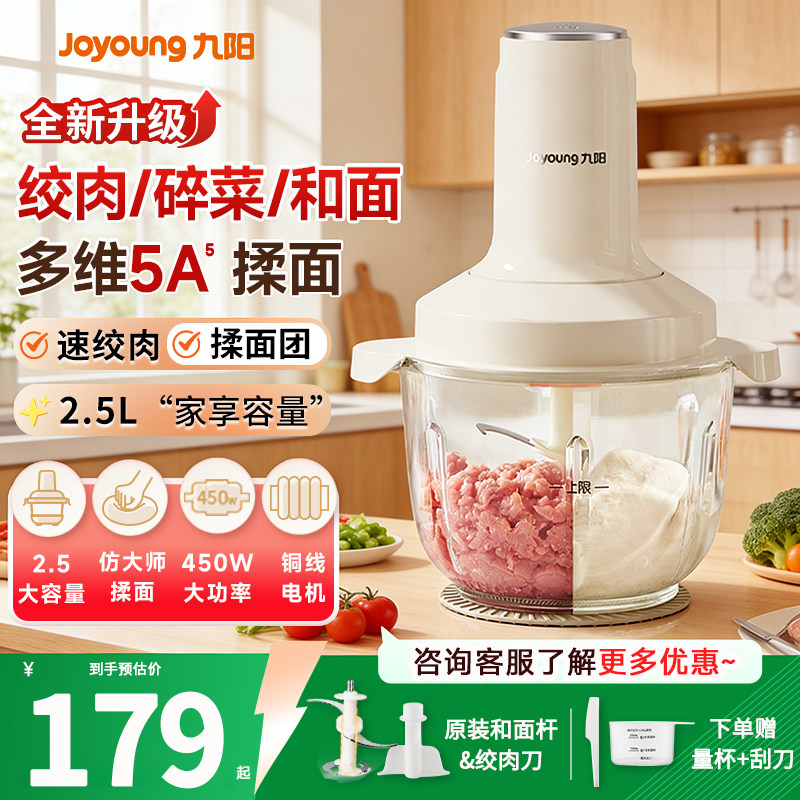 九阳绞肉机家用和面机全自动料理搅拌机小型揉面绞馅一体机打蒜器