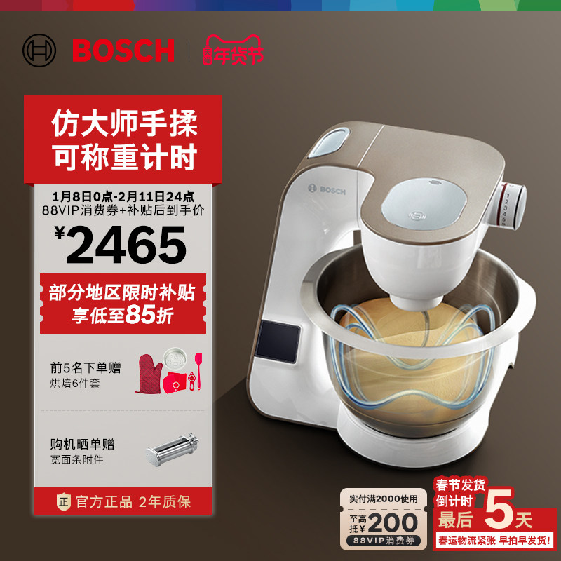 Bosch/博世集成电子秤厨师机家用小型多功能厨房和面机搅拌揉面机