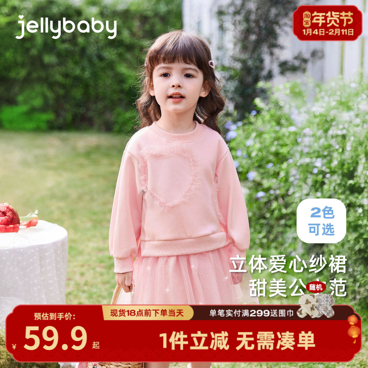 女童连衣裙秋季新款小童爱心网纱裙儿童春秋卫衣裙公主风宝宝裙子