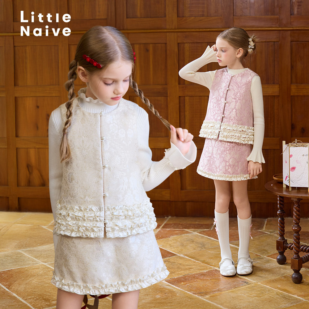 LittleNaive女童千金风夹棉马甲半裙套装公主纱裙连衣裙打底衫