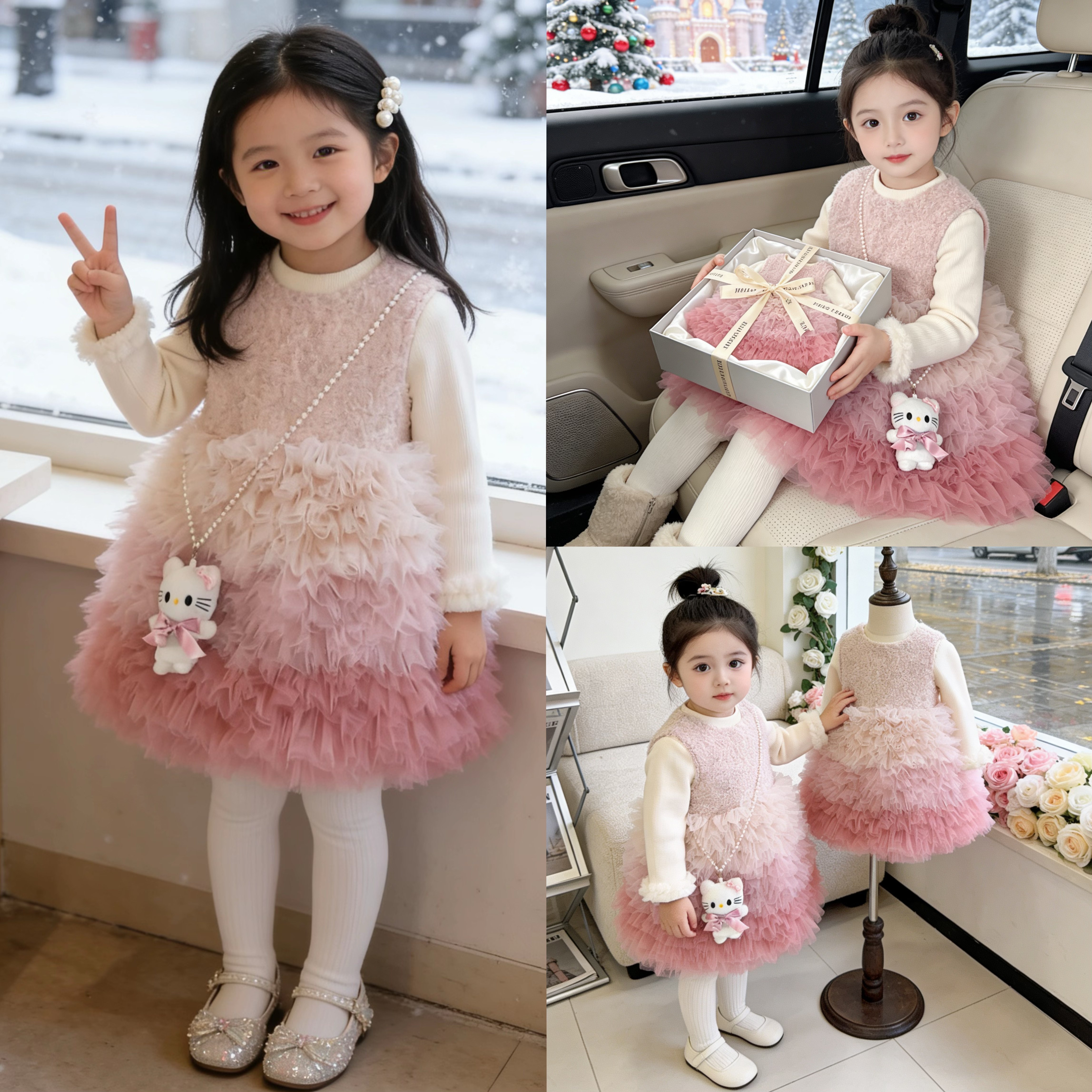 女童库洛米公主裙冬装2025新款儿童毛衣连衣裙洋气高级感蓬蓬纱裙