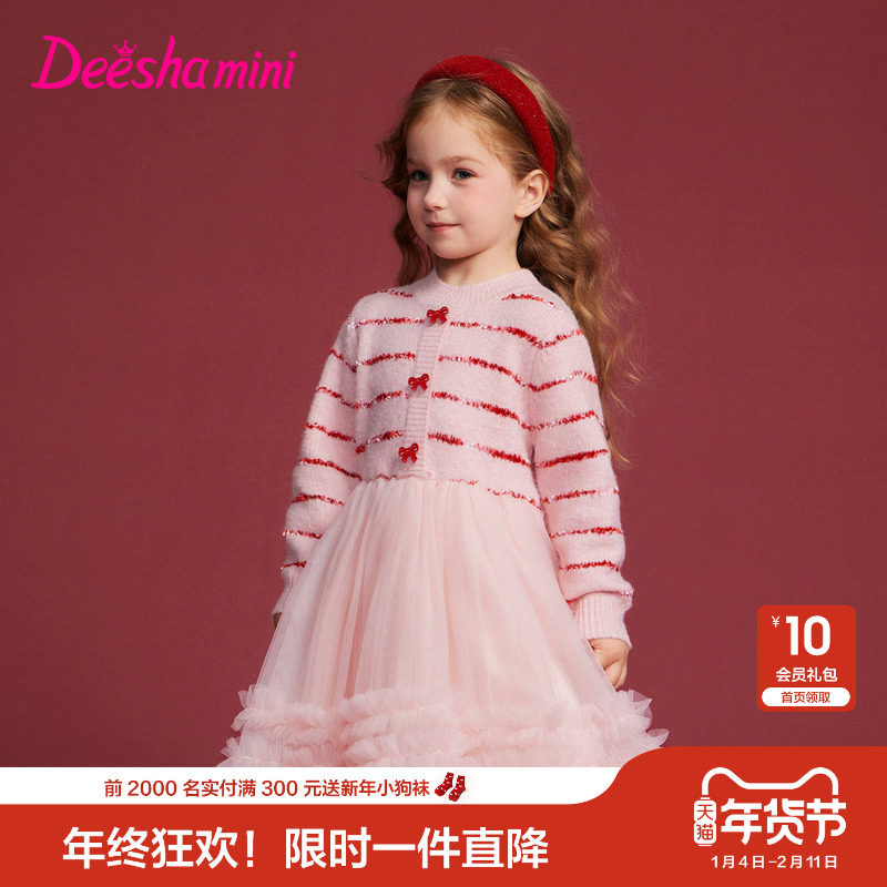 巴拉巴拉童装儿童针织连衣裙女童2025秋冬装新款公主拼接网纱裙子