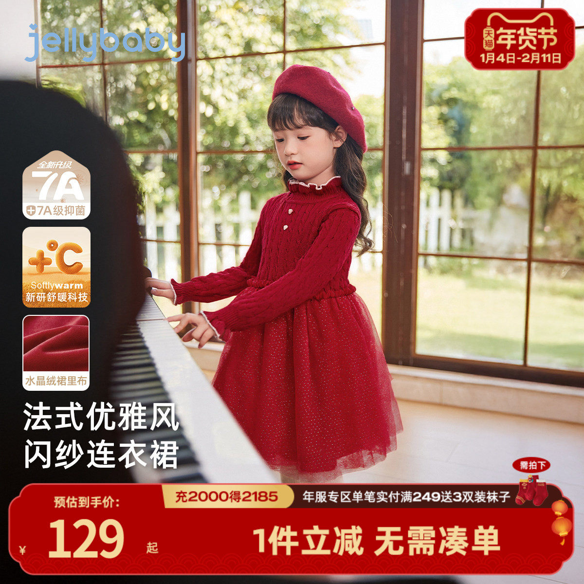 [抑菌]女童连衣裙秋冬女宝宝薄绒公主裙女孩秋装纱裙儿童红色裙子
