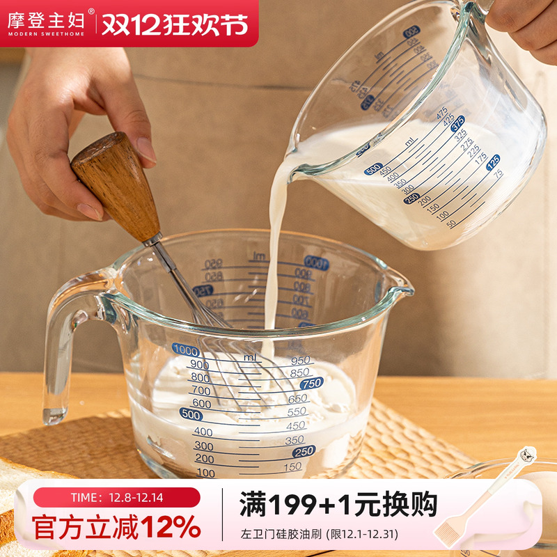 摩登主妇玻璃量杯带刻度耐高温烘焙工具厨房专用食品级打鸡蛋杯子