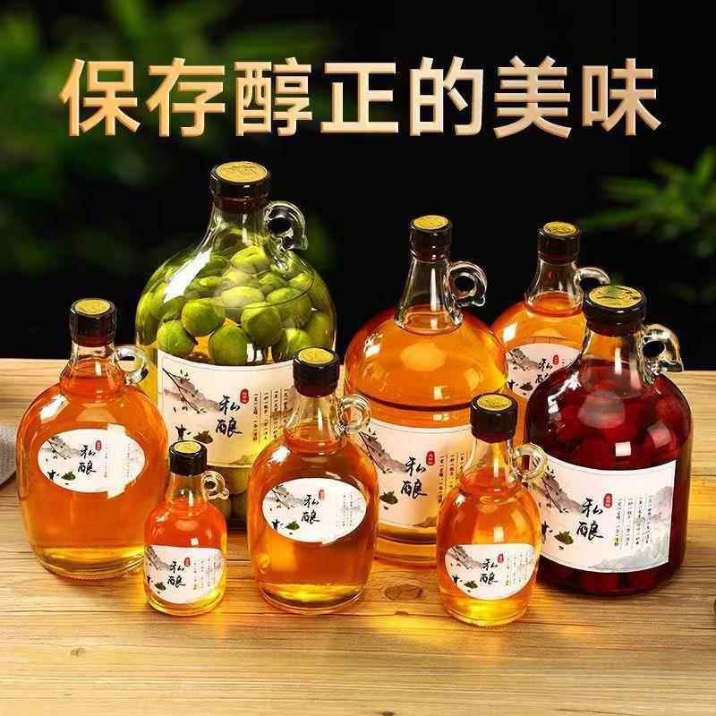 果酒泡酒透明玻璃瓶青梅杨梅泡酒罐酿酒玻璃瓶密封带盖手提果酒瓶