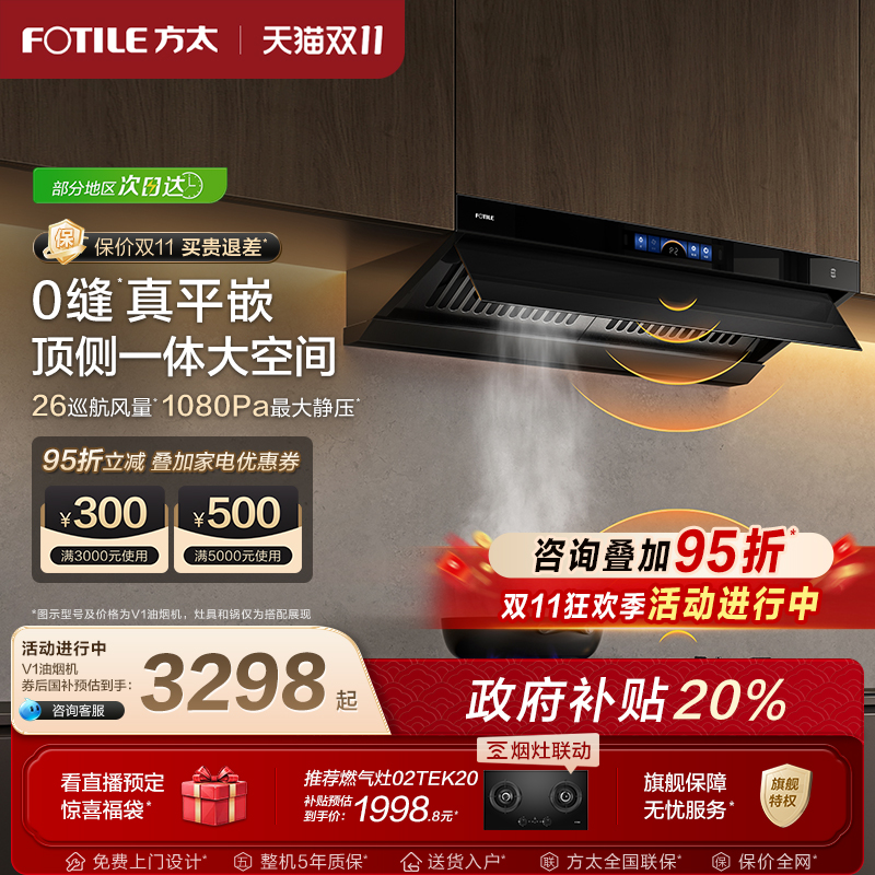 [顶侧一体]方太V1S抽吸油烟机家用厨房以旧换新补贴官方旗舰店