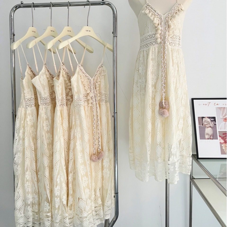 三亚海边度假吊带沙滩裙白色仙女拍照海岛绝美海滩连衣裙长裙旅游
