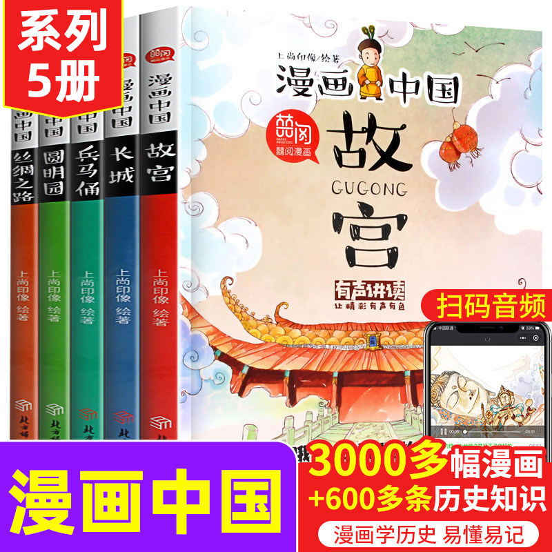 儿童漫画故事书 漫画中国故宫 季长城圆明园兵马俑丝绸之路小学生三四五六年级课外书8-12岁 上下五千年写给儿童的中国历史故事