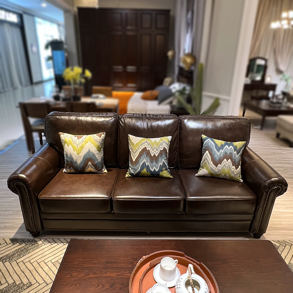 HH 美式家具客厅轻奢真皮沙发头层牛皮三/单人皮艺沙发美式沙发