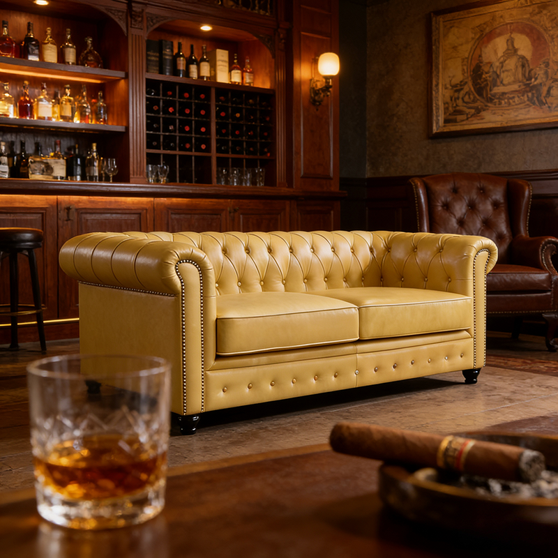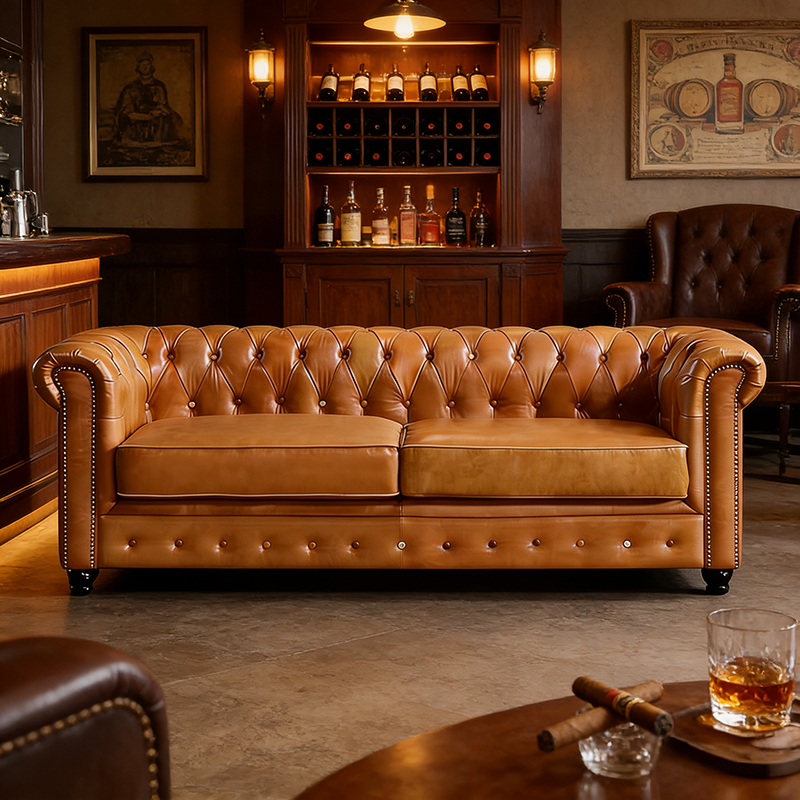 复古客厅雪茄吧拉扣沙发美式油蜡真皮沙发中古高端咖啡厅皮艺沙发