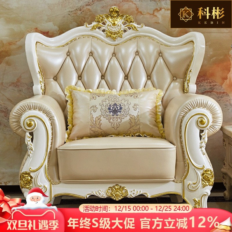 欧式金色沙发美式宫廷别墅全实木雕花真皮沙发大户型客厅整装沙发