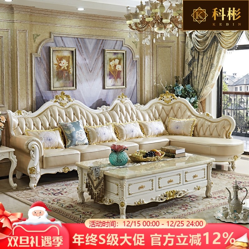 欧式沙发美式奢华客厅真皮实木雕花大小户型1234家具组合轻奢沙发