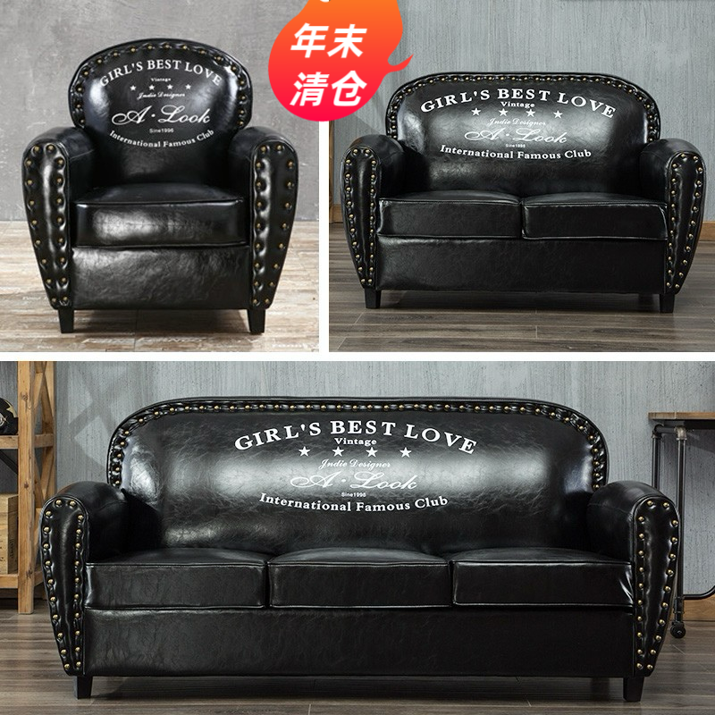 美式复古单人皮沙发双人三人酒吧咖啡厅茶楼卡座服装店卧室小户型