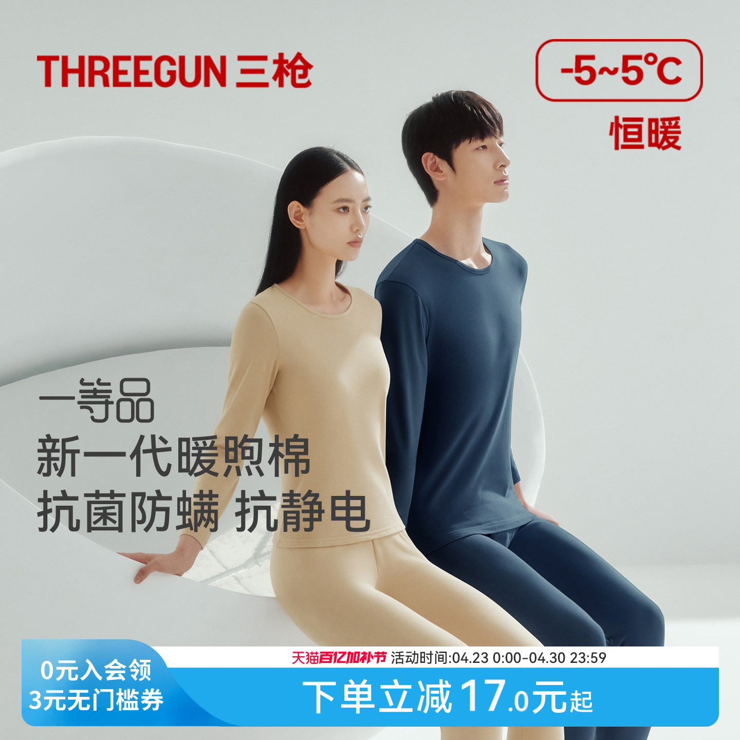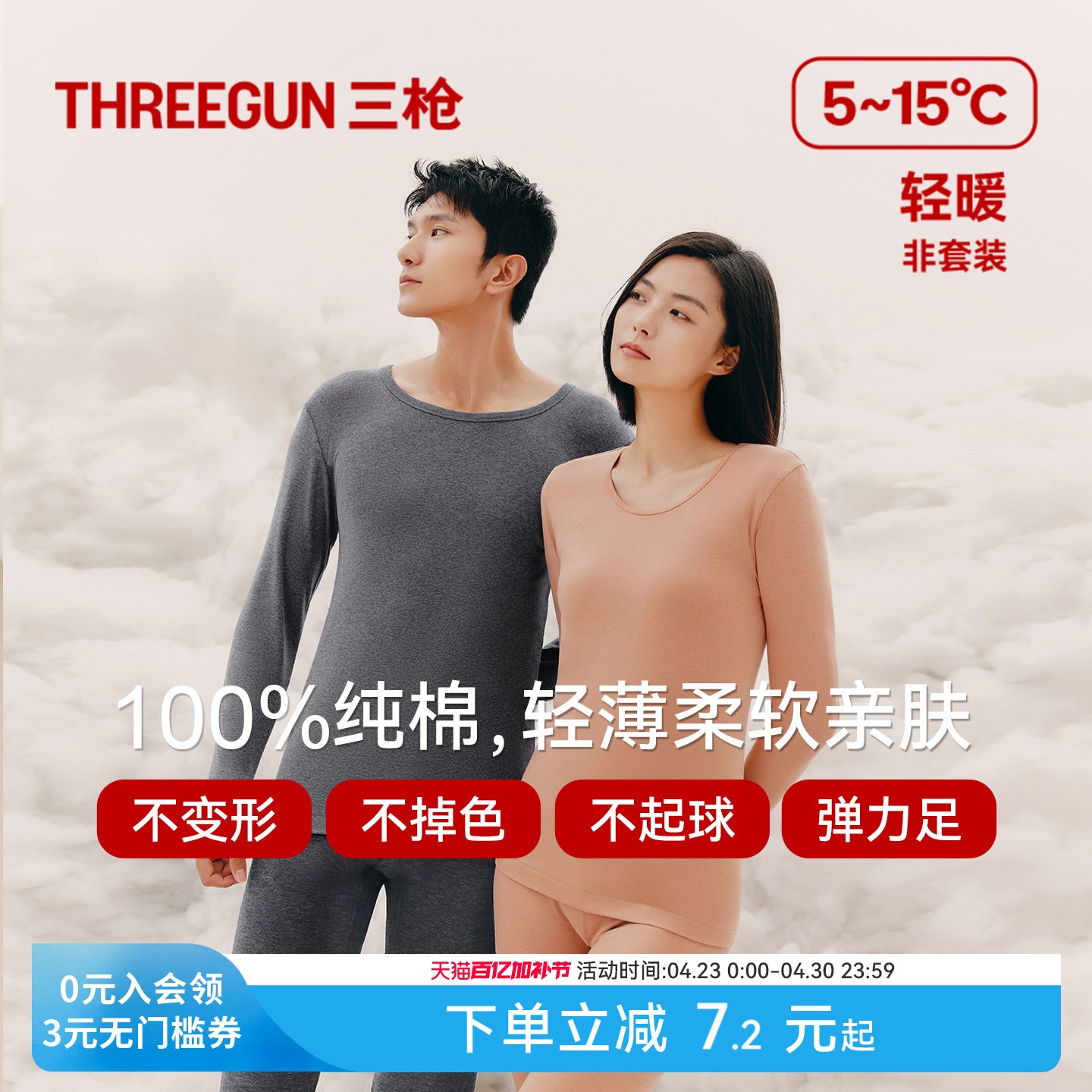 三枪保暖内衣男纯棉抗静电肌底衣套装女新款无侧缝秋衣秋裤薄抗菌