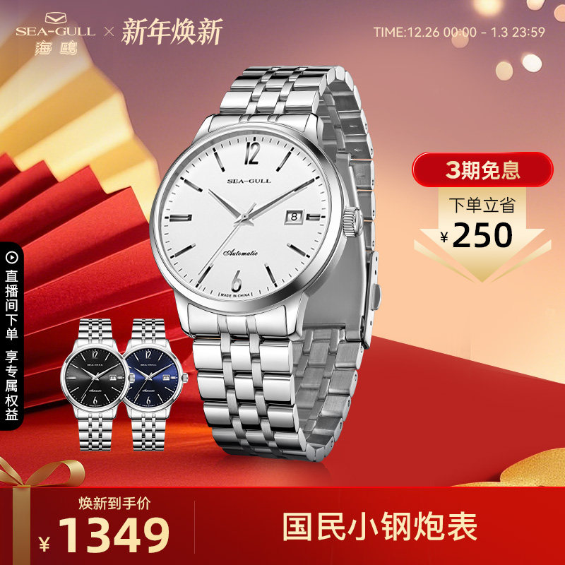 海鸥表男款国民系列商务简约钢带男士手表小钢炮机械表男表1050