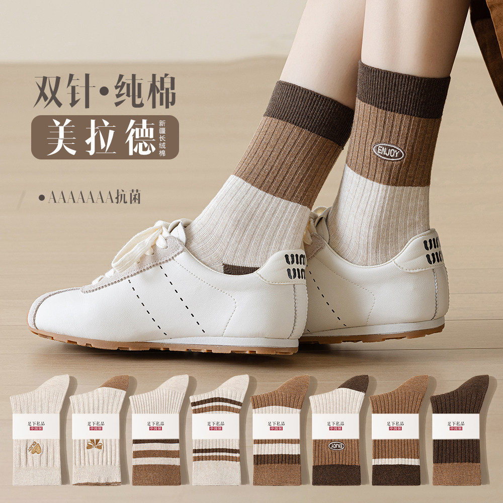 美拉德女袜春秋季纯棉2024新款爆款网红ins潮中筒堆堆袜秋冬长袜