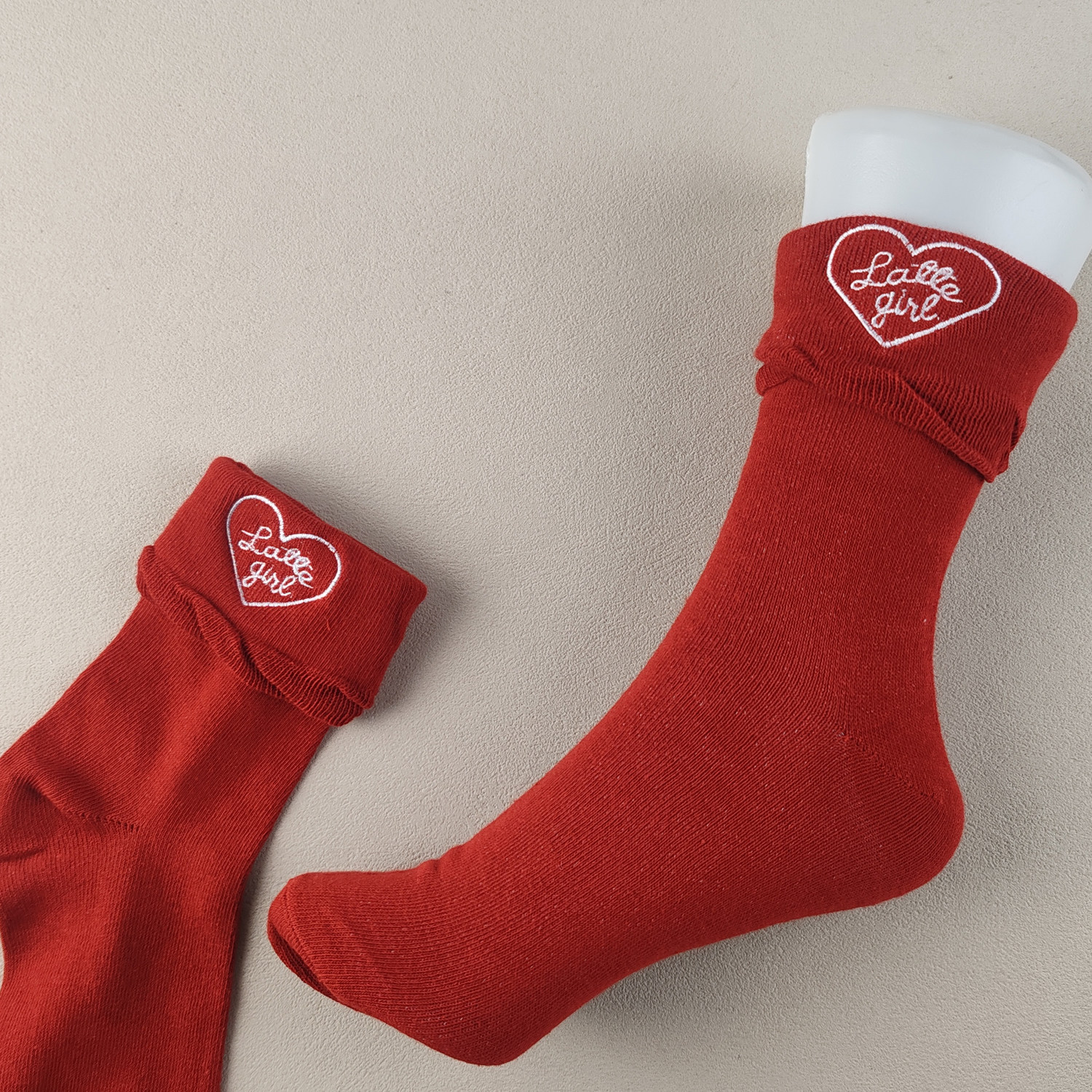 库存尾货大码女袜本命年红袜女中筒袜春秋季纯棉爱心刺绣四季袜子