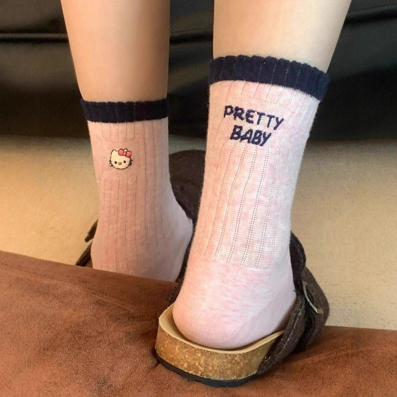 粉色kt猫袜子女可爱中筒袜纯棉春秋季2025新款爆款女生少女袜学生