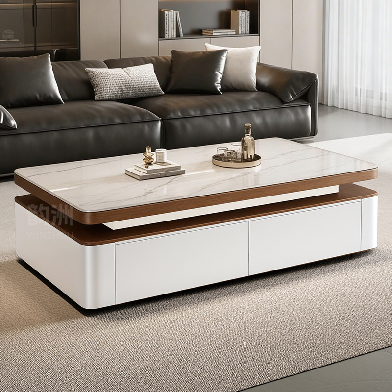 岩板茶几家用客厅轻奢简约现代奶油风茶桌小户型长方形意式茶几桌