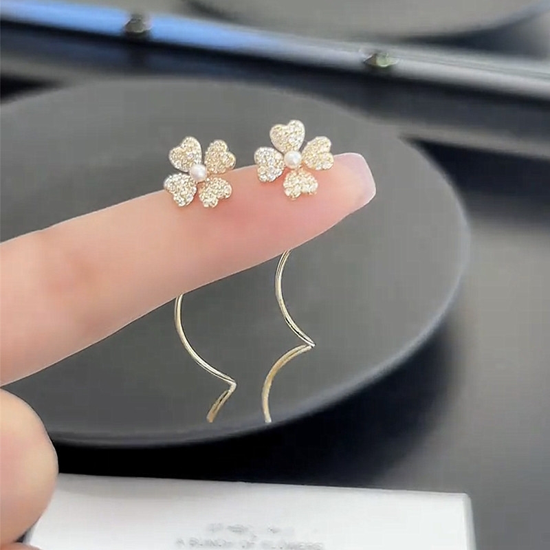 2024新款潮幸运草花朵耳线弯曲气质时尚韩国气质简约长款流苏耳环