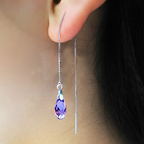 S925银耳线水滴耳环女奥地利水晶饰品长款气质流苏简约配饰韩国18