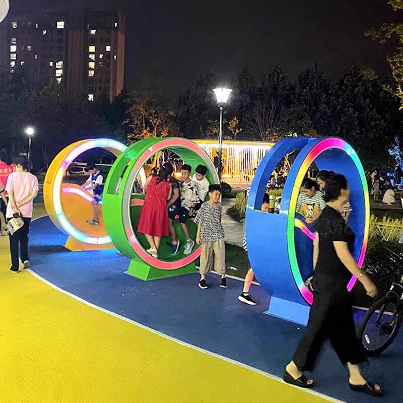 户外呐喊喊泉湖面彩灯喷泉声无动力自行车控喊泉网红观光游乐设备
