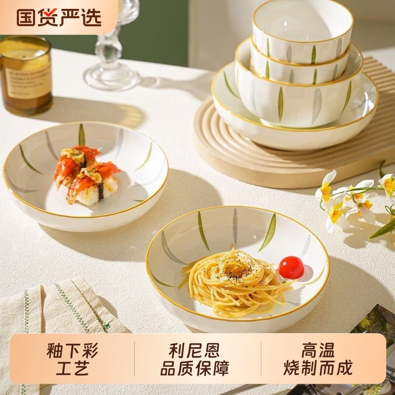 盘子家用2025新款高颜值饭碗陶瓷碗碟餐具釉下彩汤碗深盘精致轻奢