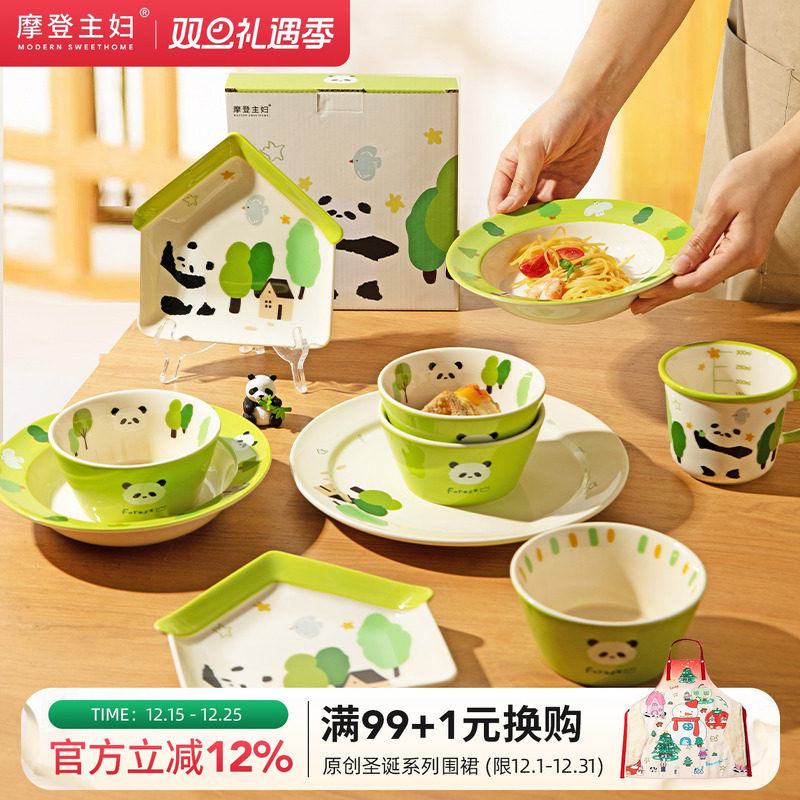 摩登主妇mototo熊猫碗儿童饭碗家用2025新款高颜值餐具汤面碗盘子