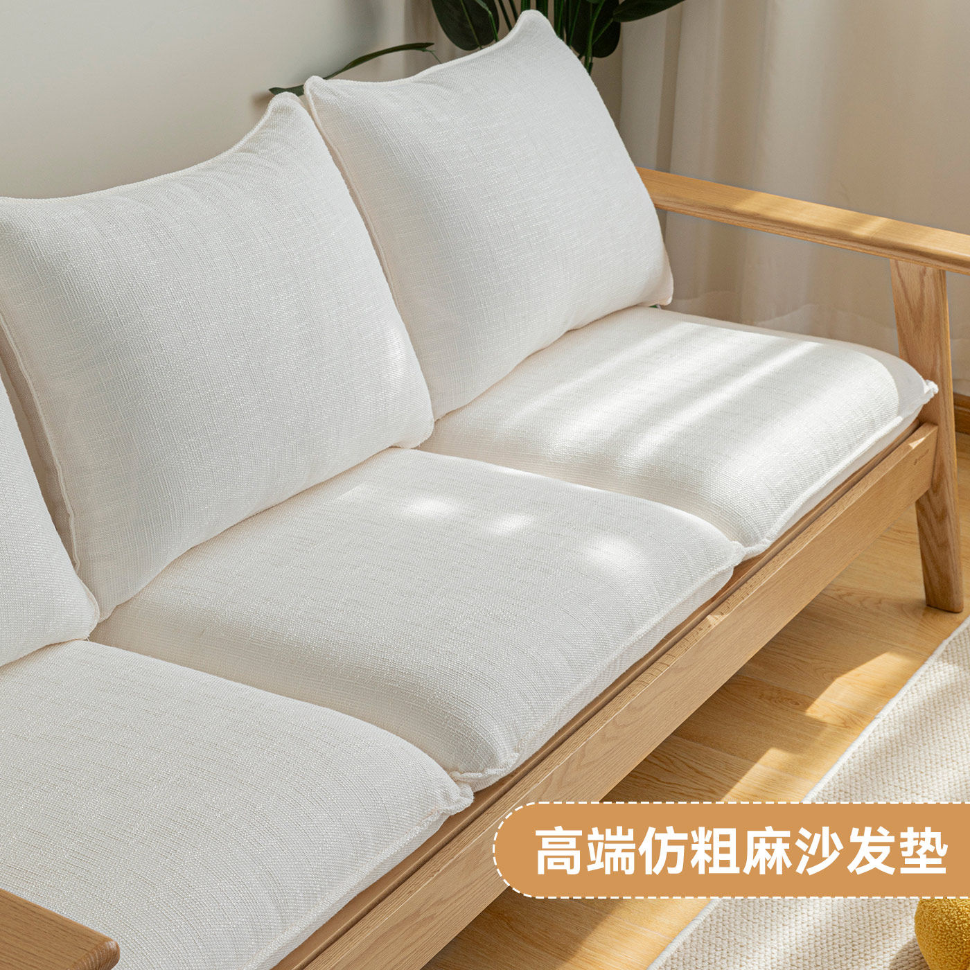 可拆洗实木加硬海绵沙发垫四季通用木沙发坐垫带靠背中式三人坐垫