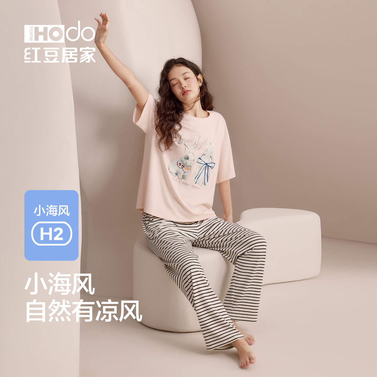 红豆睡衣女夏季莫代尔短袖长裤宽松韩版休闲可外穿凉感套头家居服