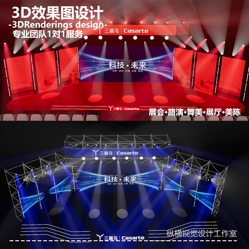 舞美舞台3D效果图设计 | 晚会/周年/秀场/奠基庆典 场景设计代画