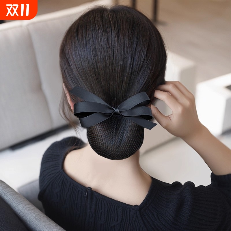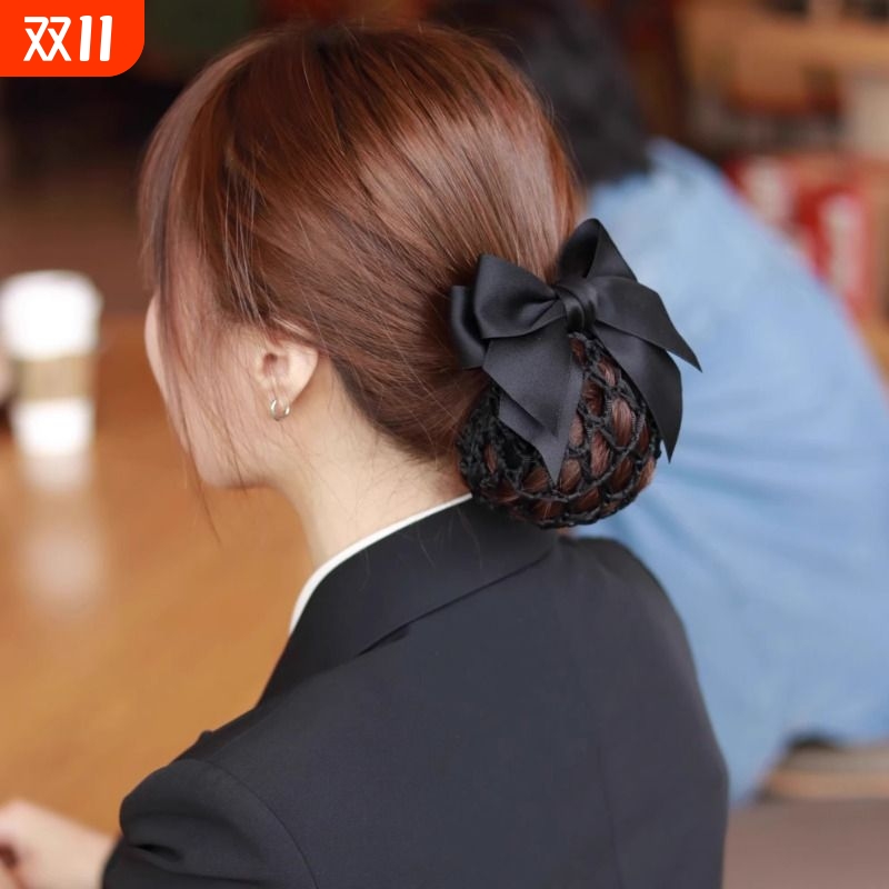 高级感护士头花女网兜网兜盘发职业发网上班银行蝴蝶结发夹发饰粗