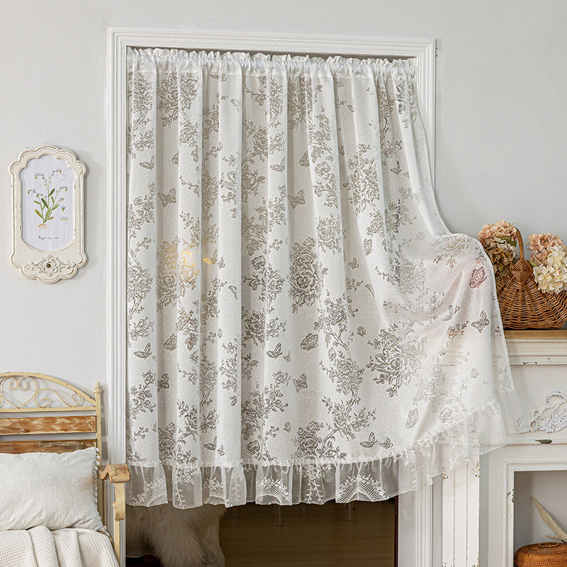法式复古窗帘纱帘蕾丝窗帘纱客厅卧室高级感飘窗窗纱免打孔隔断帘