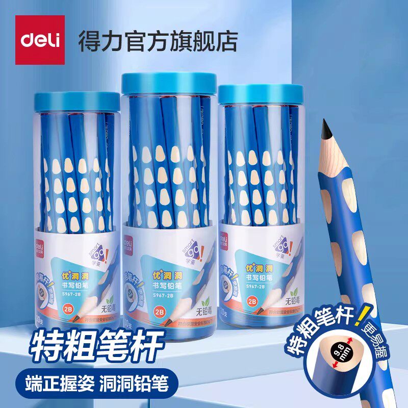得力洞洞铅笔小学生专用一二年级洞洞笔幼儿园初学者无毒学生矫姿加粗大三角杆儿童2b素描绘画正姿hb特粗铅笔