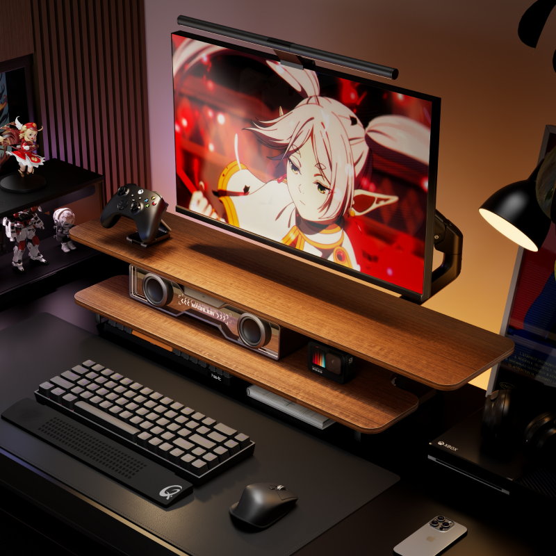 胡桃色电脑增高架台式显示器屏幕底座显示屏支架办公桌工位置物架