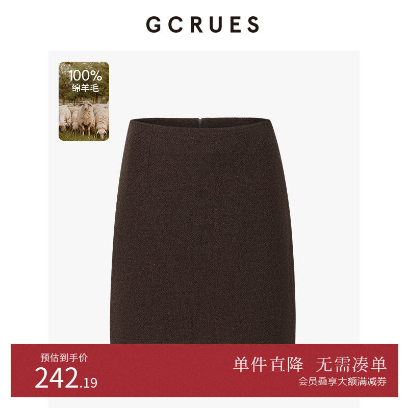 GCRUES商场同款高腰遮胯羊毛半身裙短裙女冬毛呢裙子 G09D07A1452