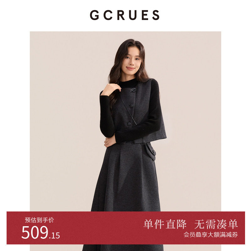 GCRUES小香风灰色马甲套装裙女冬季长款半身裙两件套G10D13E0162Z