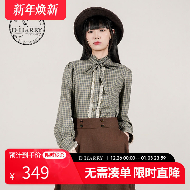 D-HARRY/迪哈利2025秋季新款蕾丝绿色格纹长袖衬衫DH253D90711T