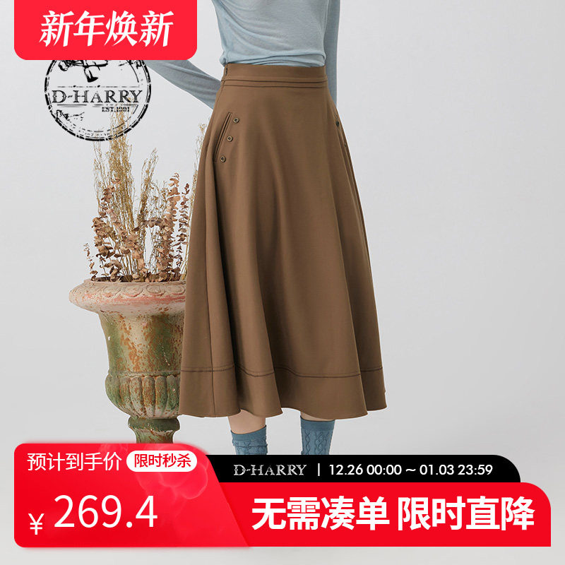 D-HARRY/迪哈利新款通勤显瘦咖啡色长裙DH234M96726D
