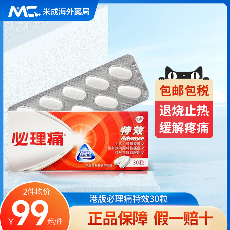 港版必理痛特效香港扑热息痛头痛发烧退烧药月经痛经止痛药必利痛