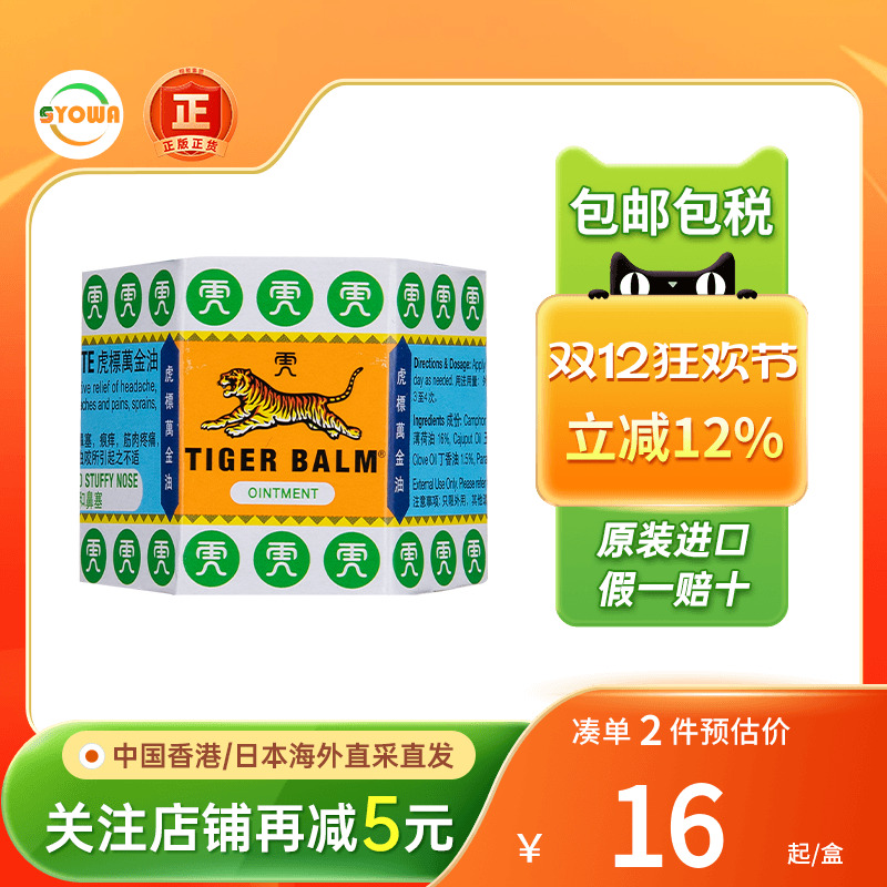 TigerBalm老虎标牌万金油膏贴肩颈舒香港版19.4g红白色清凉油痕痒