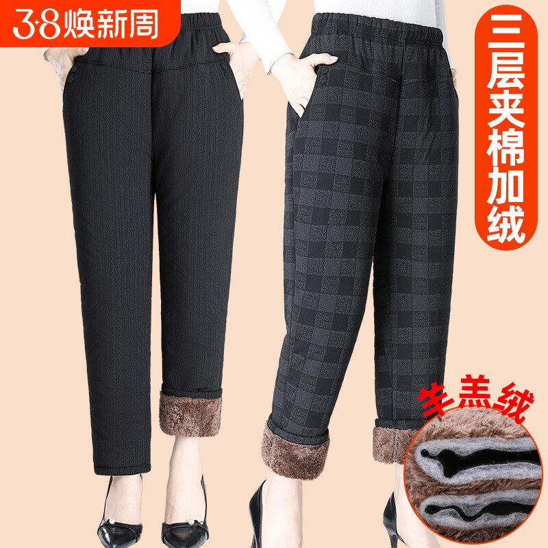 妈妈春秋宽松裤子外穿加厚中老年羊羔绒女裤冬款棉裤女加绒保暖裤