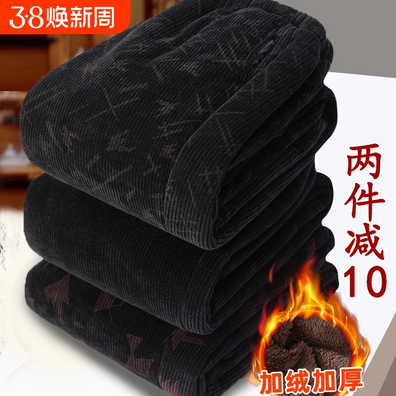 中老年妈妈冬装棉裤女加绒加厚高腰灯芯绒裤子奶奶老人外穿保暖裤