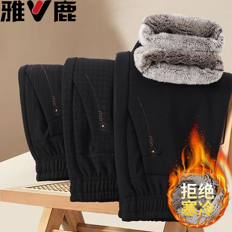 雅鹿中老年人冬季长裤子女奶奶装妈妈秋冬加绒加厚休闲裤小个子女