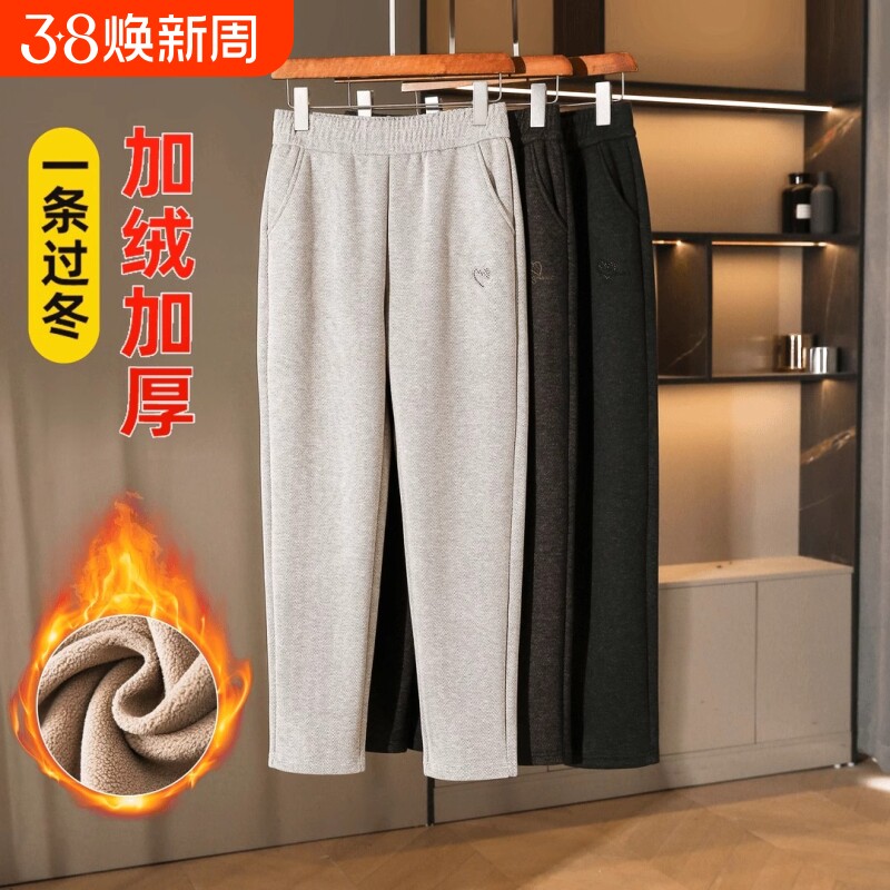 中年妈妈裤子秋冬加绒加厚中老年女裤保暖直筒裤宽松高腰休闲长裤