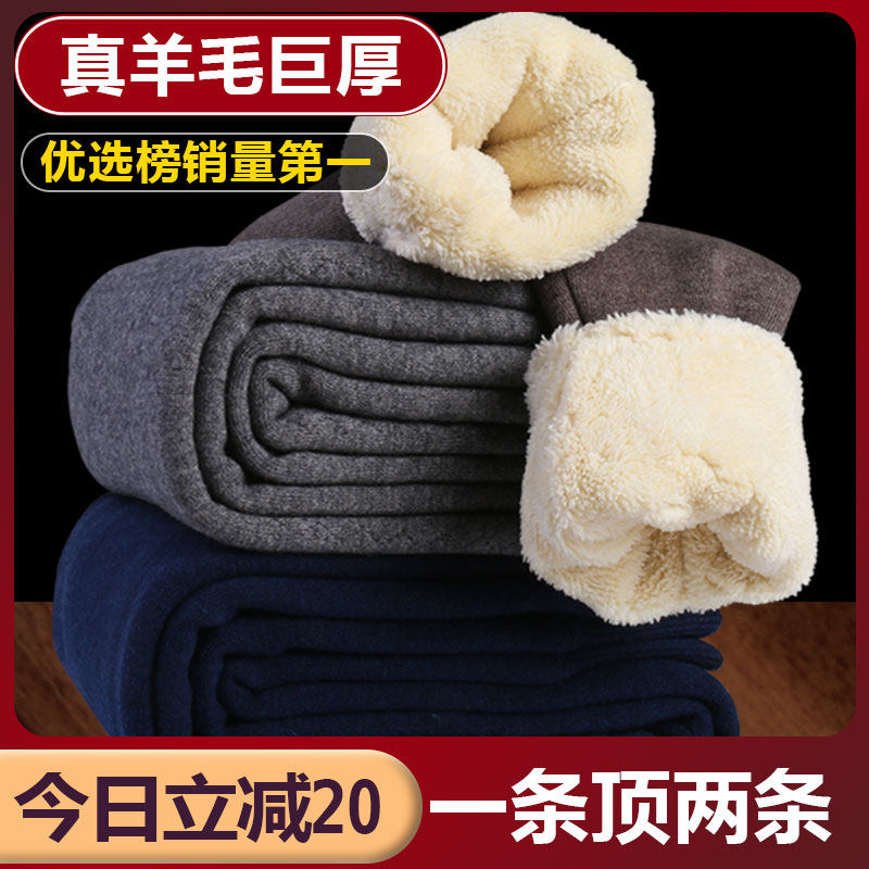 羊毛裤男士保暖裤加厚加绒中老年人高腰羊羔绒东北棉裤女外穿冬季