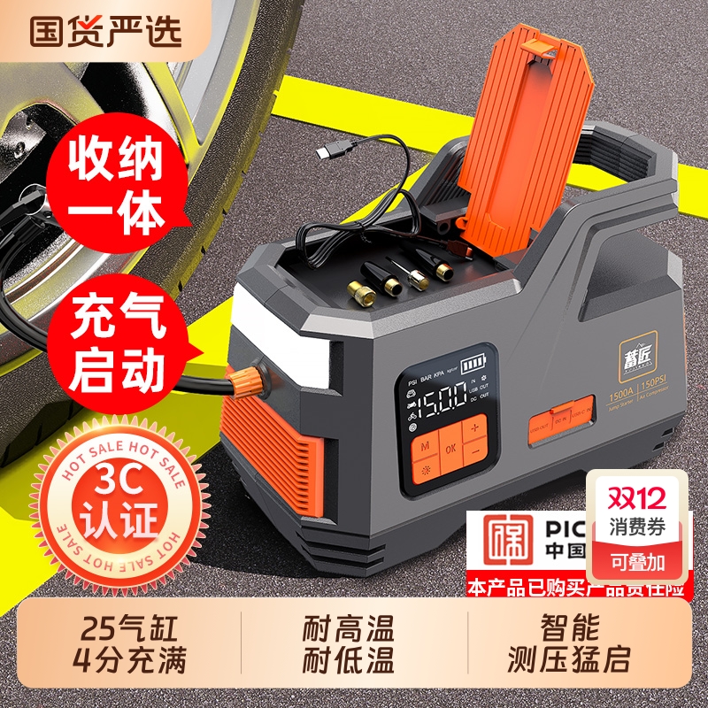 蓄匠汽车多功能车载应急电源充气泵一体机启动12V打火神器搭电宝