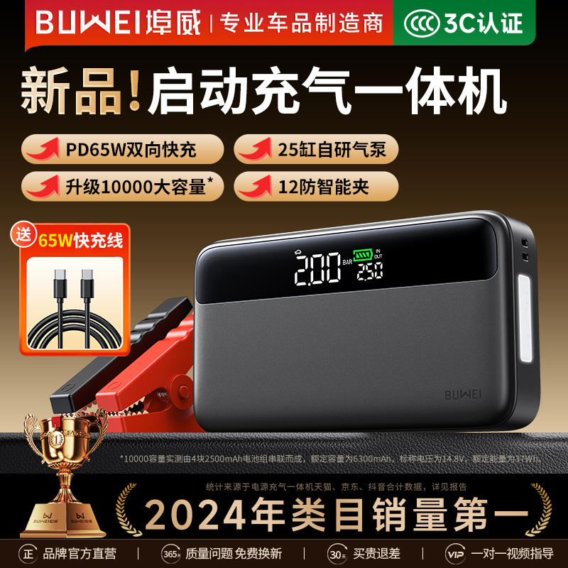 埠威BUWEI汽车应急启动电源车载充气泵电瓶紧急强搭电宝打火神器