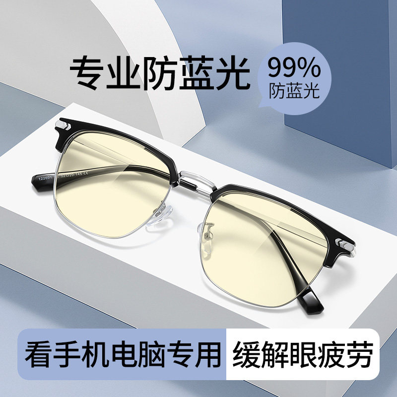 半框防蓝光眼镜男女商务电脑手机辐射护目镜平光无度数近视镜框架
